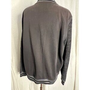 Stylish Marvel the Punisher XL varsity style jacket in black and gray, with an embroidered logo. Made from a comfortable mix of cotton and polyester. Features a snap front closure and lower pockets. Machine washable and made in China.