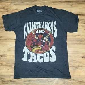 Awesome Deadpool Chimichangas and tacos graphic short sleeved tee Size M #0611