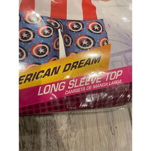 Marvel, Captain America girls, Halloween costume shirt, child size M/L. See pictures for measurements. Smoke free home.