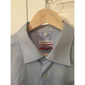 Marvelis Dress Shirt Blue Modern Fit Size 17 3/4 Non Iron. Condition is Pre-owned. Shipped with USPS mail.