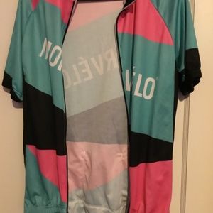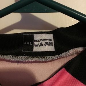 Womenswear’s XXLarge cycling shirt with 3 pockets in the back for water bottles. No rips or tears I pin the material.