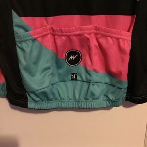 Marvelo women’s XXLarge black teal pink cycling shirt with pockets in the back