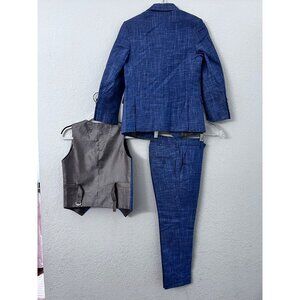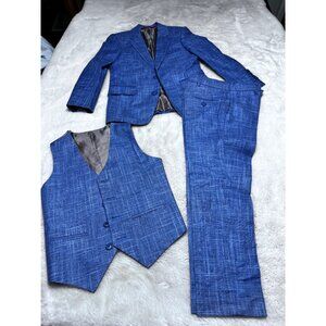 Marvelous Kids Boys Suit Set 3-Piece With Jacket Vest & Pants Size 6 Blue Plaid