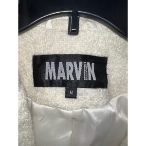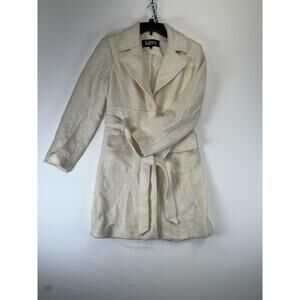 Marvin Coat Womens Medium Cream Wool Blend Belted Bouclé Textured Dressy Jacket