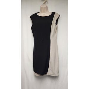 Marvin Richards Color Block Knee-Length Sheath Dress Size 8. This dress will hug your curves with a fitted sheath dress ending above the knee. From shoulder to hem, the sides of the dress feature color block beige Contrast. The strategic inserts flatter the body with the wonder of illusion. Layer with tights, boots and a jacket for Winter wear, or wear alone during Spring and Summer.