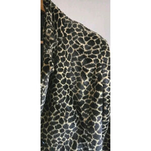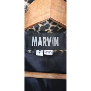 Get ready to turn heads with this stunning Marvin Richards faux fur coat. The brown color and animal print pattern make it a perfect choice for a party or casual occasion. The coat features a button closure and a collared design that gives it a classic look.