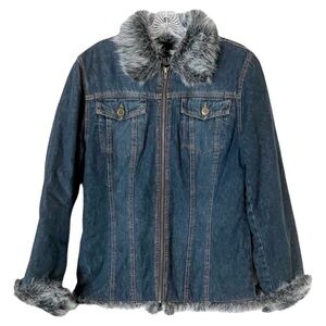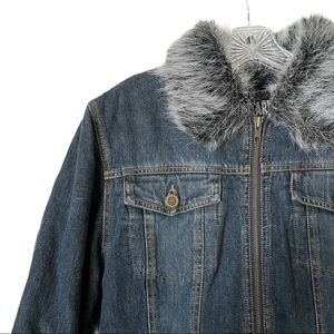 Marvin Richards Faux Fur Gray 100% Cotton Jean Jacket Size S