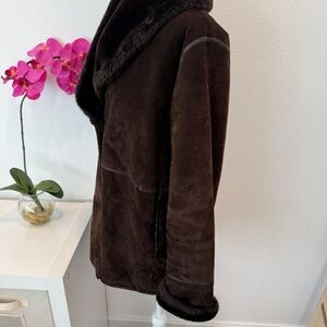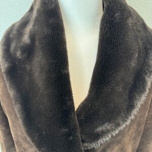 Marvin Richards Faux Suede Chocolate Brown Coat Size M Faux Fur Trim & Lining M