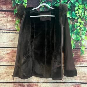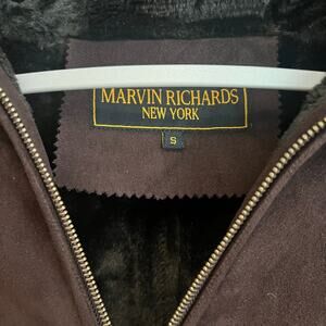 Marvin Richards New York Full Zip Jacket Small Suede Genuine Fox Fur Trim Brown Hooded