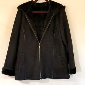 Marvin Richards Hooded Jacket Faux Suede & Faux Fur Lined Sz XL Gorgeous