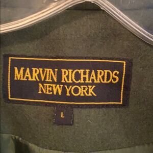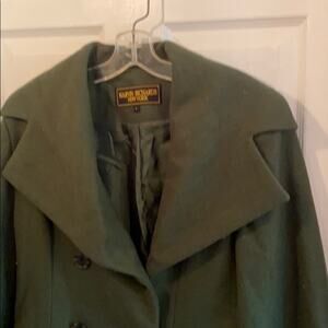 Marvin Richards coat. Absolutely love this green color. Double breasted. Front pockets. Button detail on the sleeves. Armpit to armpit 20 inches. Length 26 1/2 inches. Large. Excellent condition.