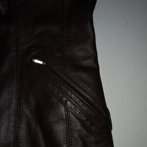 Marvin Richards Ladies Full Zip Snap Collar Brown Leather Jacket