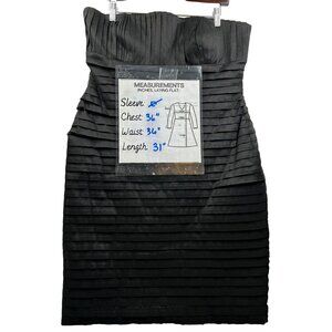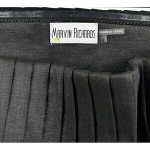 Turn heads in this elegant strapless black dress by Marvin Richards. This timeless piece features pleated tiers from bust to hem, creating flattering texture and dimension. The built-in bustier lining provides structure and support for a secure fit. Perfect for formal occasions, cocktail parties, or evening events.