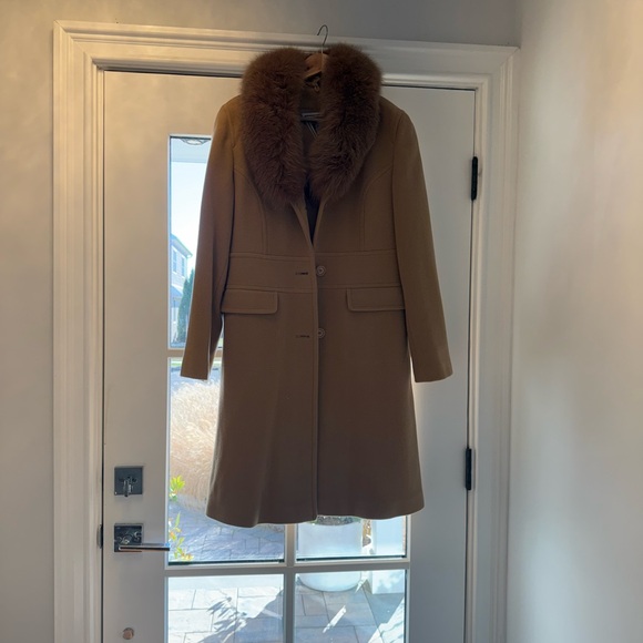 Chic trench coat by Marvin Richards. Features a plush fur collar. Ideal for cool weather. Fur can be detachable slight wear shown in pictures