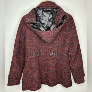 Marvin Richards Women’s Red/Black Tweed Double Breasted Pea Coat Size XL