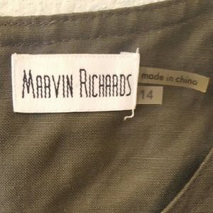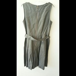This office appropriate knee-length dress has never been worn! Color: army green, belted, gold colored buttons, gold colored metal zipper, pockets. Smoke-free, pet-free home. NWOT