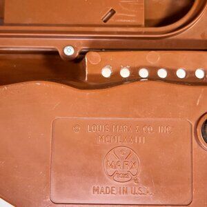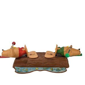 This 1973 vintage Marx Toys collectible features two bears ready to spar in a Rock Em Sock Em style on a detailed log base. Crafted by Louis Marx, this toy combines nostalgic charm with durable construction, offering both interactive play and collectible appeal. Ideal for toy enthusiasts and vintage collectors.