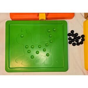 This is a Marx Toys Cat's Eye Tabletop Marble Game from 1978. It comes with the original box, marble machine, 4 game boards, and marbles for all 4 players. This game is in good condition and working order. Some of the original marbles have been replaced but it is complete although the instructions are missing but they are also on the box.