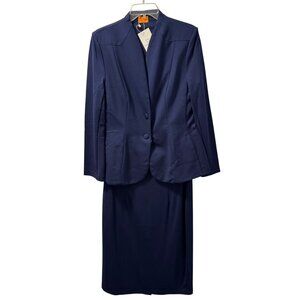 Mary Crafts Womens Navy Blue Blazer & Skirt Suit Set Size 12 Rayon/Nylon Blend