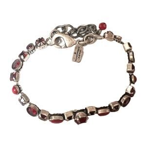 Mary DeMARCO La Contessa vintage designer bracelet Faux Garnet/Ruby Pewter 6"-8"