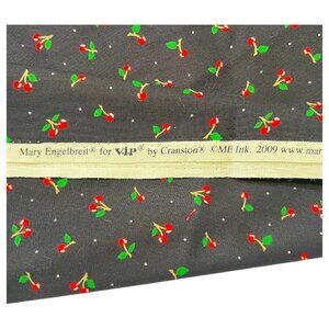Mary Engelbreit Cherry Black Print Cotton Fabric Cranston 2009 44” x 37”, 1 Yard