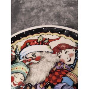 This charming vintage Mary Engelbreit plate captures a nostalgic holiday scene with Santa and children. A delightful addition to festive collections.