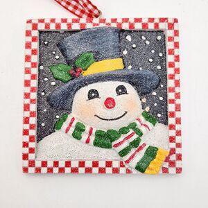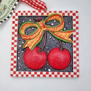 Mary Engelbreit Christmas Ornaments Glitter Red Check Frame Snowman Cherries