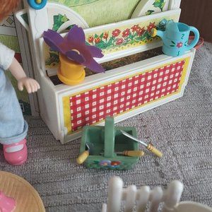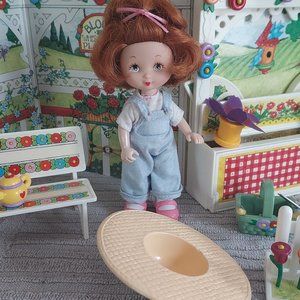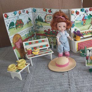 RARE in MINT condition never played with Mary Engelbreit 5" doll with her garden playset. all pieces are in excellent mint condition no stains tears or wears. The back drop slips inside the garden for a full color scene and this playset is ready for you to enjoy. This is a highly sought after set for Mary Engelbreit collectors and its even more hard to find in complete good condition. Please review pictures to make sure you agree with my assessment as all sales are final