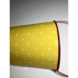This Mary Engelbreit Flower Garden HALF pail is a whimsical and original piece of wall or table decor. Made of metal, it features colorful flowers on a yellow polka dot background. Since it’s metal, it could also be used to hold fresh flowers.