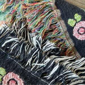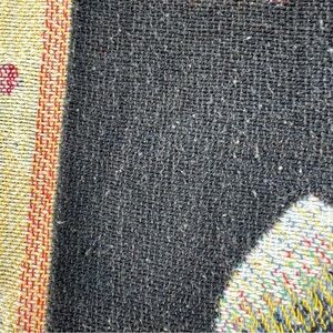 Mary Engelbreit Waiting For Spring Woven Tapestry Throw. Featuring a patient gardener waiting for her plant to sprout. Multicolor fringed ends.