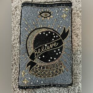 Mary Frances Beaded Crossbody Clutch Handbag Believe Looking Glass Moon Eye