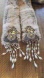 Mary Frances elegant tan and cream faux fur scarf. Embellished with gold, silver and simulated pearl bead fringe and applique at ends. Soft cozy fabric. Excellent used condition.