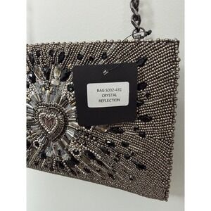 Mary Frances Crystal Reflection Crossbody Handbag Beaded Heart Black Silver NEW