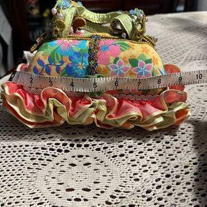 Mary Frances Floral Beaded Ruffled Small Handbag Pink Yellow