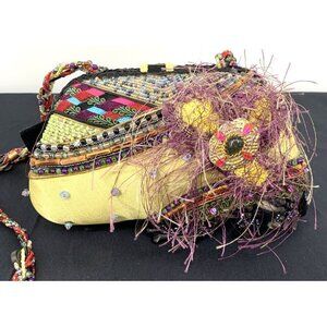 Mary Frances Hardshell Handbag with Beaded Shoulder Strap 8" Vintage