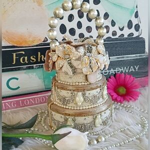 * Mary Frances "I Do" Ivory Cream Beaded Tiered Wedding Cake Bridal Bag