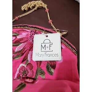 Hand-embellished with signature Mary Frances artistry, this design blends vibrant pink tones with sparkling beadwork for an elegant, feminine look.
