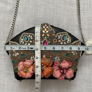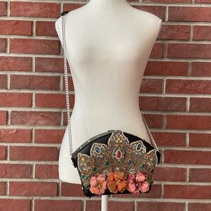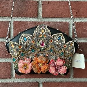 Mary Frances Princess Crossbody Crown Black Flowers Jewelry Purse NEW With Tags