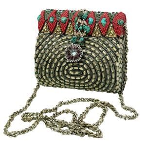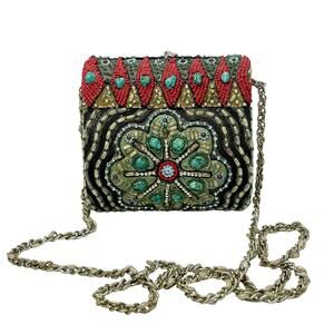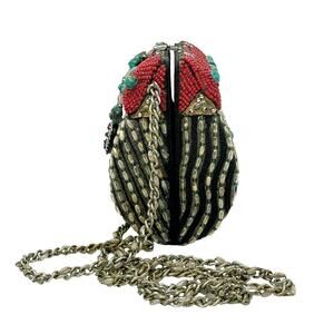 Get ready to make a statement with this vintage Mary Frances Embellished Beaded Shoulder Bag. This vintage bag features beaded swirl accents, making it a unique and eye-catching accessory. The magnetic closure keeps your belongings secure, while the velvet lining and lightweight design ensure comfort and practicality.