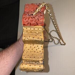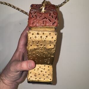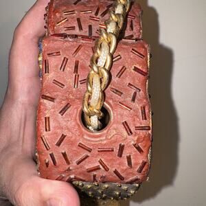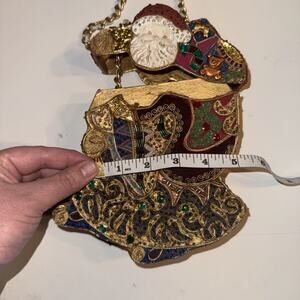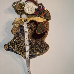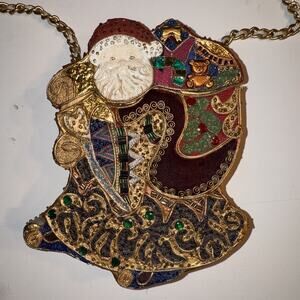 Mary Frances Wood Velvet Beaded Santa Xmas Chain Handbag Purse Holiday