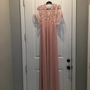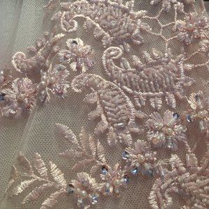 Top is embroidered and beaded mesh with a tie at the neckline and another tie under the bust