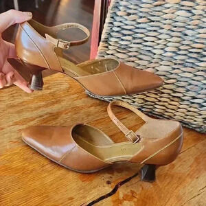 Mary Jane 90's Leather Heels sz 6.5 Tan