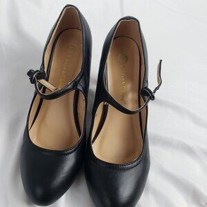 Mary Jane Heels Chase & Chloe Womens Black Faux Leather Size 8.5
