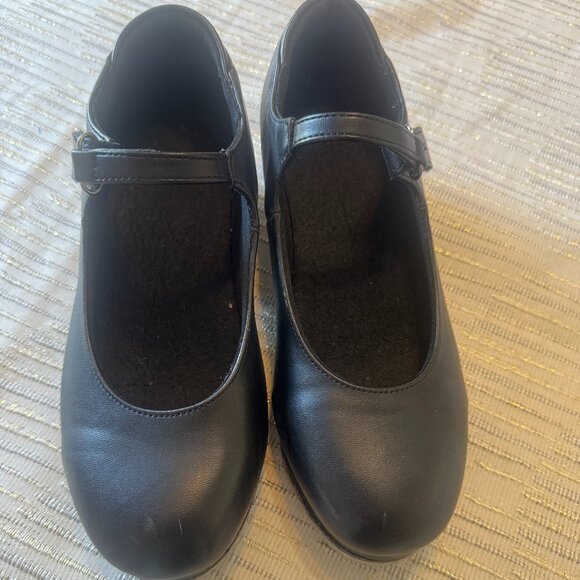 Used Black Mary Jane Tap Shoes, Girls Size 3.