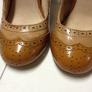 Meant to look distressed, new Mary Jane stacked heel, patch work patten leather. 4" heel.