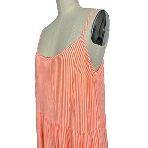 Mary Jo Swim Isaura Spritz Dress Orange Beige Stripe Size M Boho Beach Coastal Tiered Adjustable Straps. Retails for $189