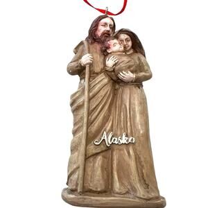 Mary Joseph and baby Jesus Christmas Ornament Alaska Festive Holiday Brown