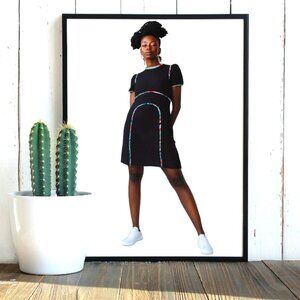 Mary Katrantzou Black Multicolor Contrast Piping Short Sleeve Dress, Size 2