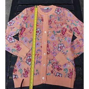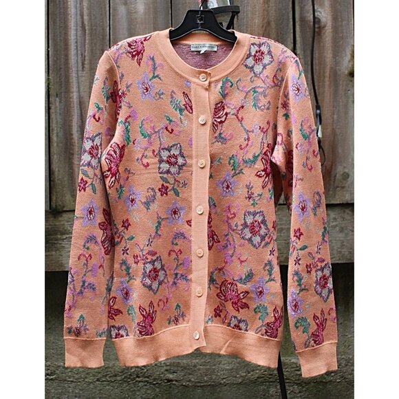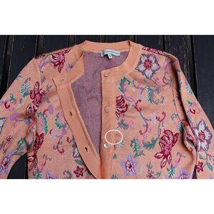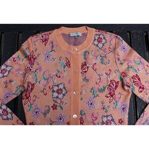 Mary Katrantzou Designer - Women's Button Front Floral Cardigan in a Silk + Cashmere + Wool Blend in size Medium. Retail $695 or $795.