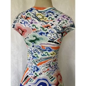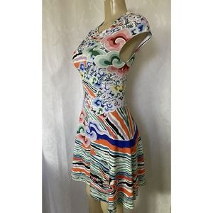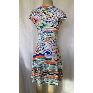 Mary Katrantzou Rainbow Cloud Dress Fit Flare Cap Sleeve Multi color S